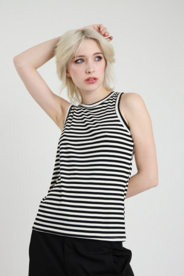 Ribbed tank top in stretch cotton, narrow shoulder and square neckline. 95%co 5%ea