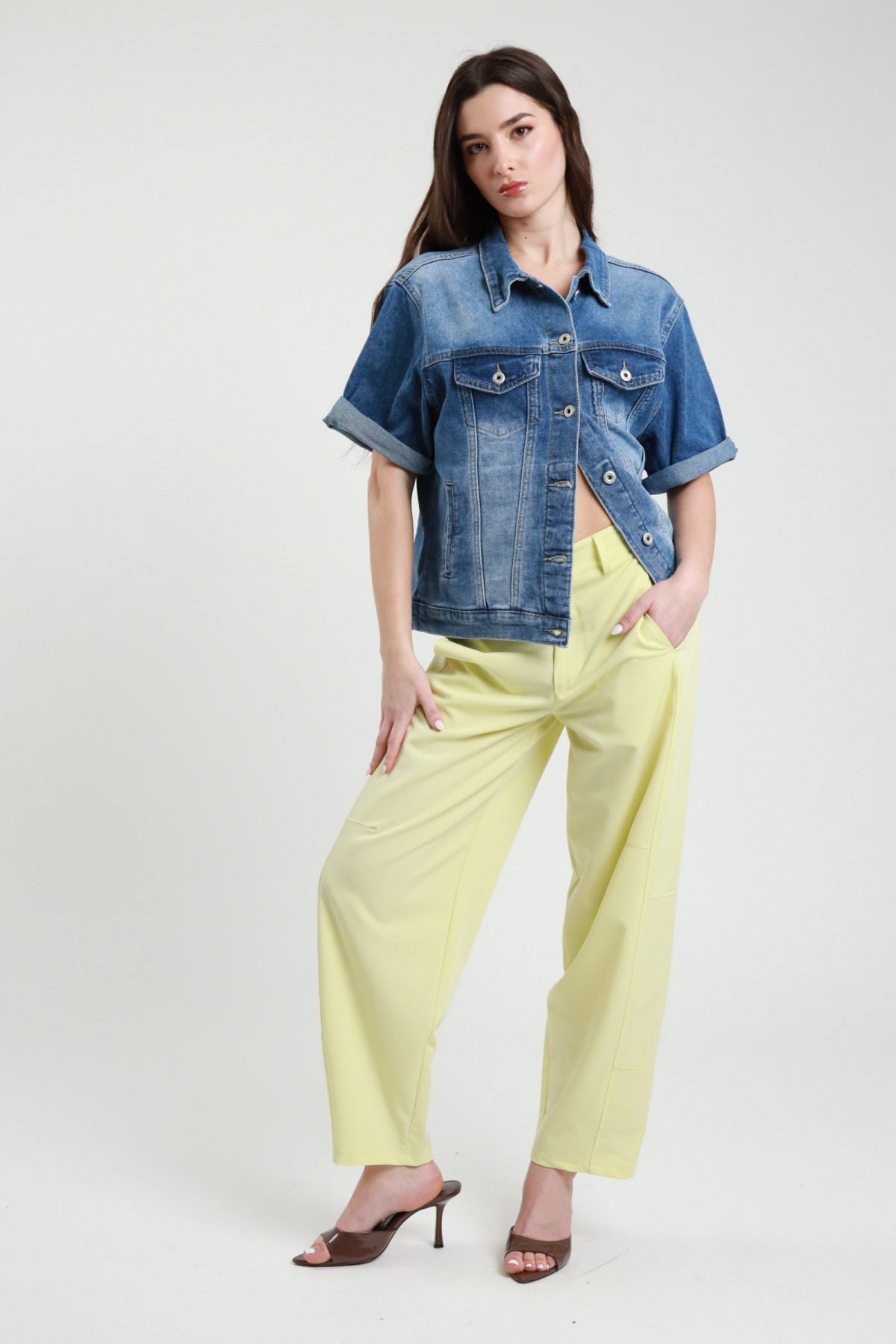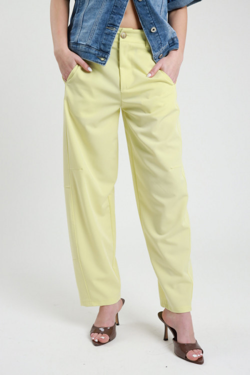 Hose im Ballonmodell mit 2 Taschen, Gummizug und Gürtelschlaufen an der Taille, Reißverschluss und Knopfverschluss.  66%pl 33%vi 1%ea