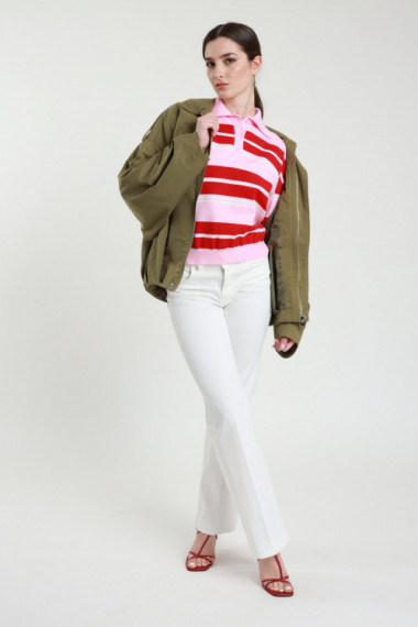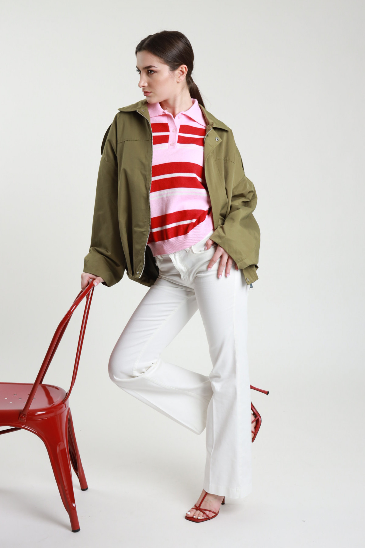 Kurzer Trenchcoat mit Fledermausärmeln. Reißverschluss + Reißverschluss-Abdeckklappe mit Druckknöpfen. Erstatteter Fonds. 67 % bis 33 % nein