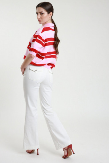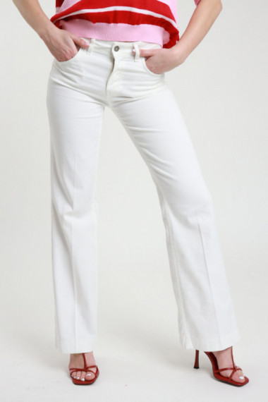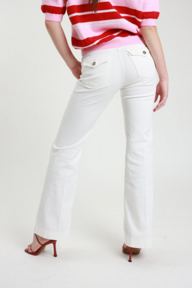 Jeans Gamba Dritta con Taschine Applicate sul Fronte e Tasche con Pattina e Chiusura Bottone sul Retro.