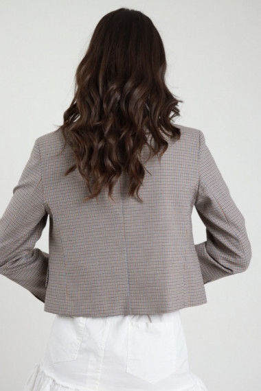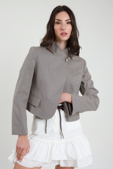 Crop-Jacke mit Hahnentrittmuster, Crossover-Verschluss am Kragen, 1 Knopf, Fake-Taschen mit Patte. 89%PL 11%EA+100%PL