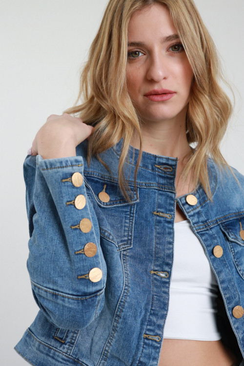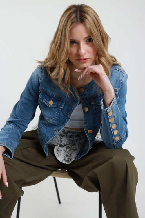 Giacca Crop Stile Militare con Bottoni Applicati.