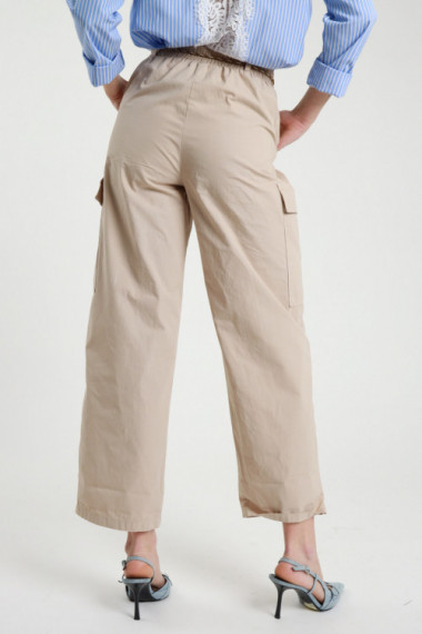 Pantalone in Cotone Gamba Dritta con Elastico in Vita e Cintura Laccio, Tasconi sulla Gamba. 100%co