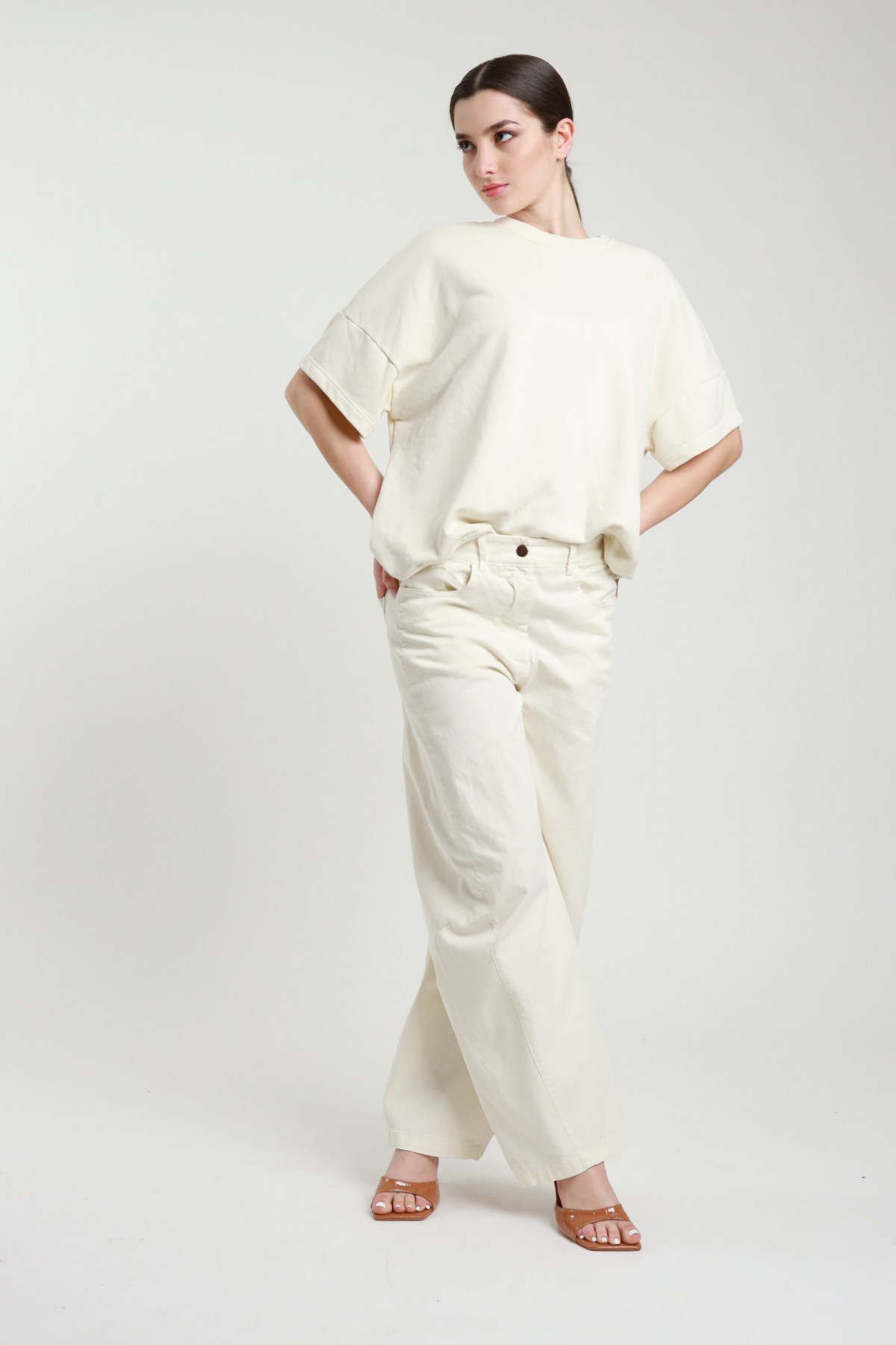Pantalone Ovetto Over, Tasconi Sul Fronte, Cintura Con Gioiellino Stellina. 100%co