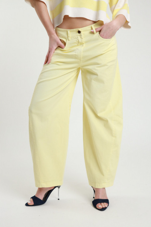 Pantalone Ovetto Over, Tasconi Sul Fronte, Cintura Con Gioiellino Stellina. 100%co