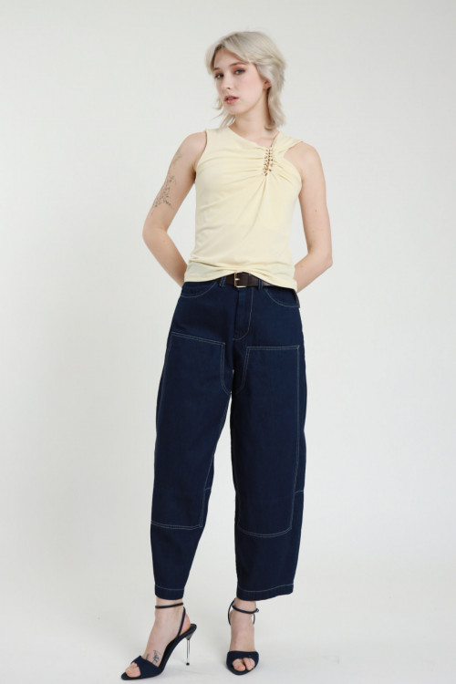 Tanktop mit asymmetrischen Trägern und Schmucksteinen auf der Vorderseite, die Locken formen. Slim-Fit. 95 % pl 5 % Stück