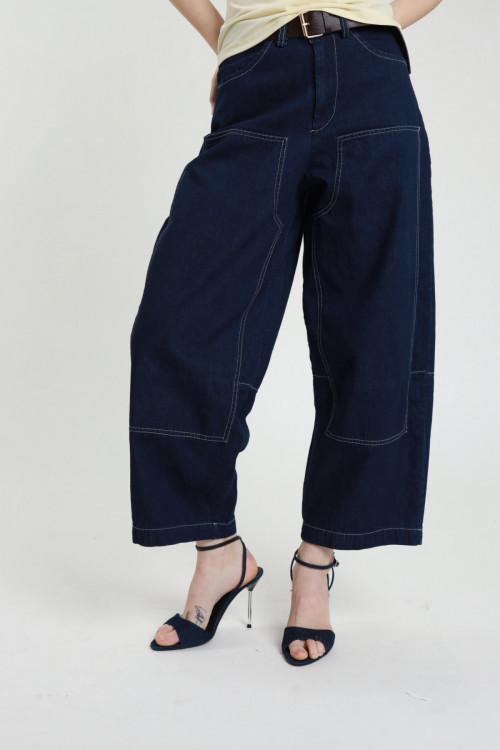 Arbeitsmodell-Jeans aus Baumwolle mit Kontrastnähten, 4 Taschen, Reißverschluss und Knopfverschluss. 100 % co