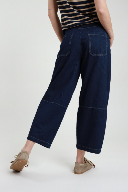 Pantalone in Bull Denim Modello Mom Fit con Cuciture a Contrasto.