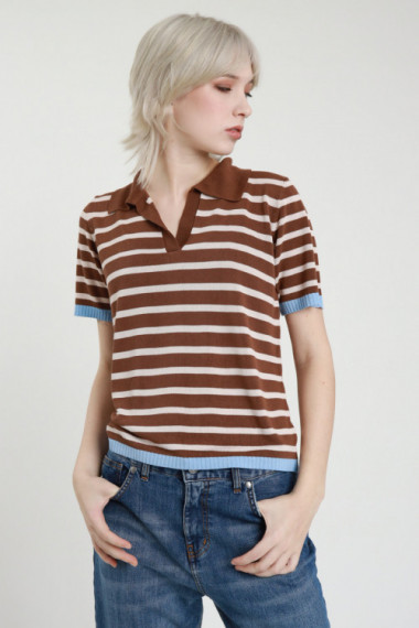 Gestreiftes Poloshirt mit Kontraststreifen an den Rändern. 100 % vi