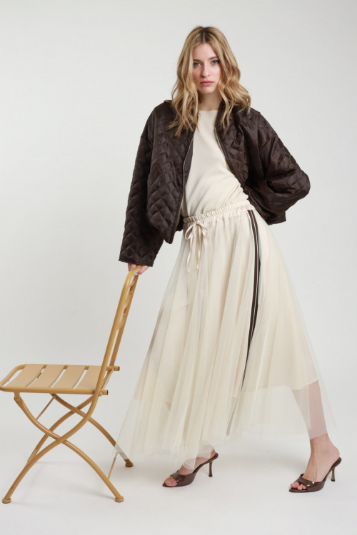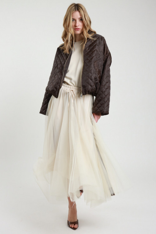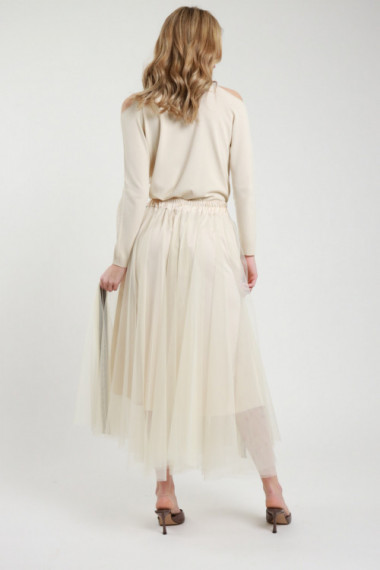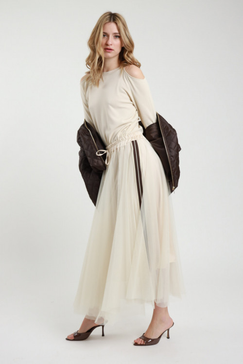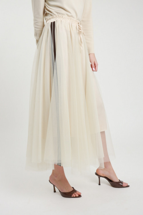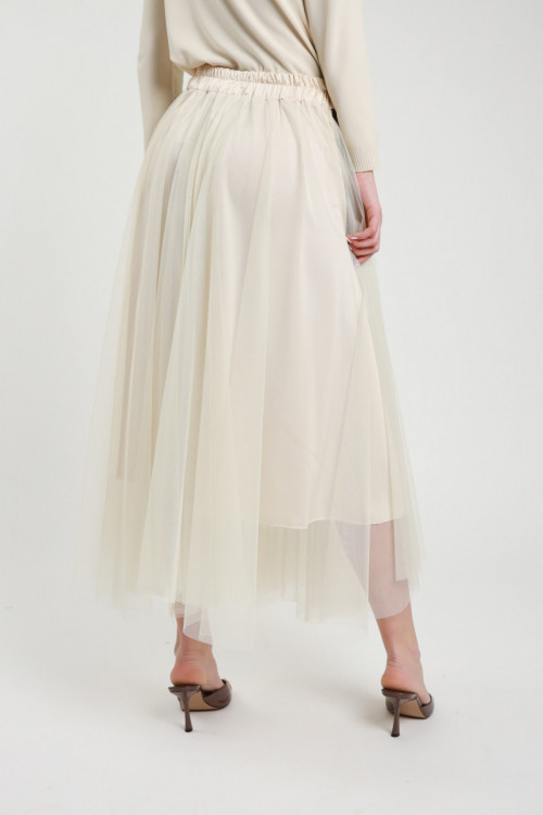 Gonna Lunga Semitrasparente con Culotte Incorporata, Elastico in Vita.