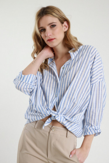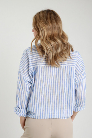 Camicia Gessata a Righe con Dettaglio Fiori in Pailettes. 50%co 50%pl