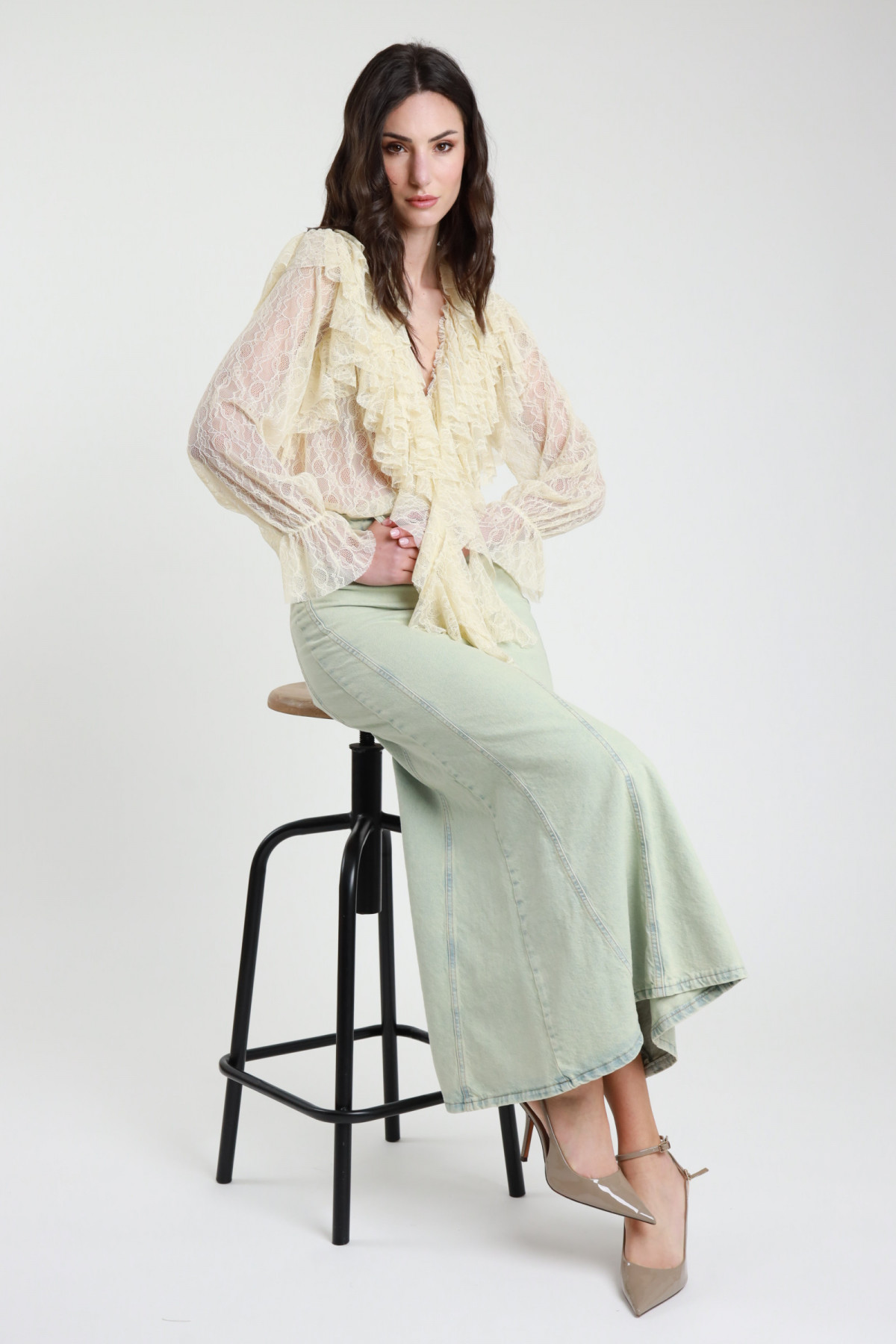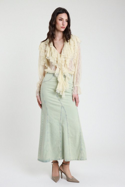 Gonna Lunga Semitrasparente con Culotte Incorporata, Elastico in Vita.