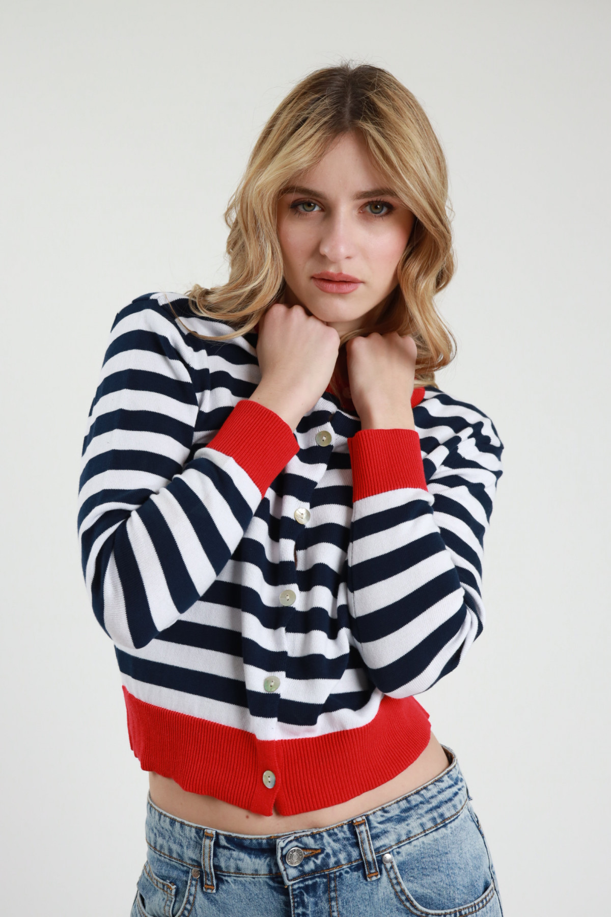 Maglia Punto Riso Manica 3/4, Scollo Barchetta. 100%co