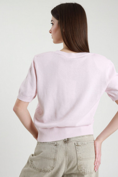 Cardigan Girocollo Con Bottoni Perline, Sfondo Sfrangiatino, Regular Fit. 75%vi 25%pa