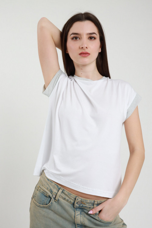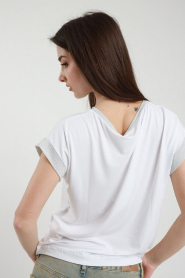 Übergroßes T-Shirt mit Lurex-Einsätzen am Ärmelrand und am Hals. 94 %vi 6 %ea