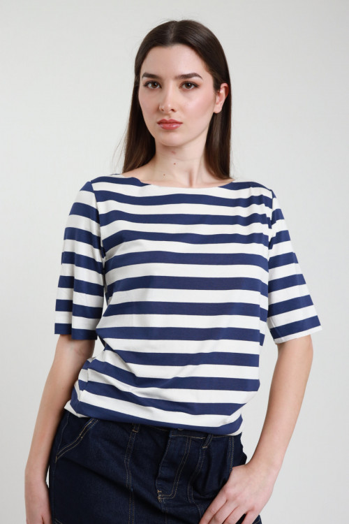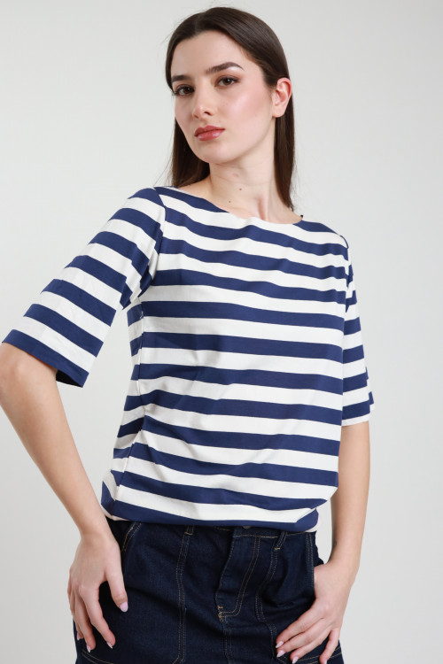 T-shirt Scollo V Righe