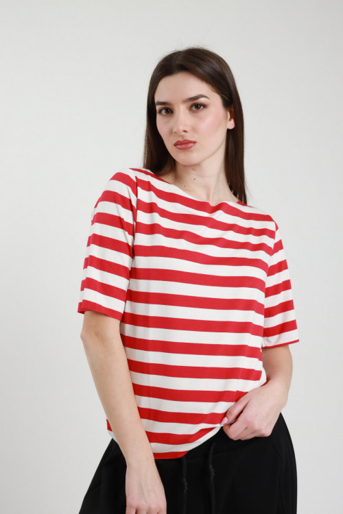 T-shirt Scollo V Righe