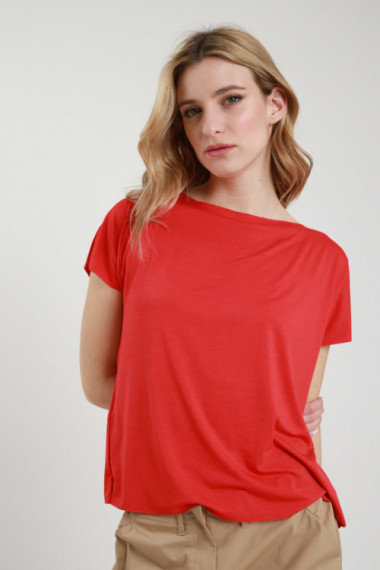 T-Shirt aus Stretch-Baumwolle mit gewaschenem Effekt, V-Ausschnitt und Nieten an den Armlöchern. 95 % CO 5 % Stück