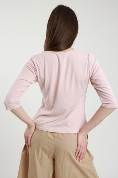 T-Shirt aus Stretch-Baumwolle mit gewaschenem Effekt, V-Ausschnitt und Nieten an den Armlöchern. 95 % CO 5 % Stück