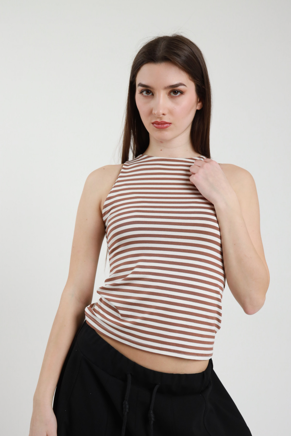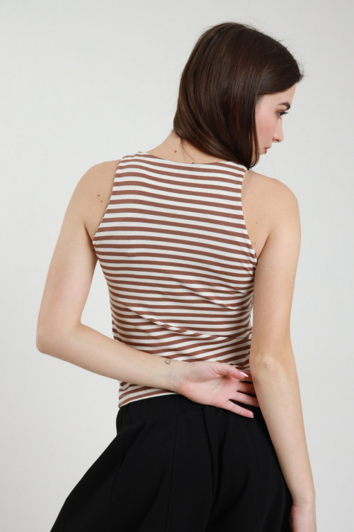Ribbed tank top in stretch cotton, neckline in a little flower pattern. 95%co 5%ea