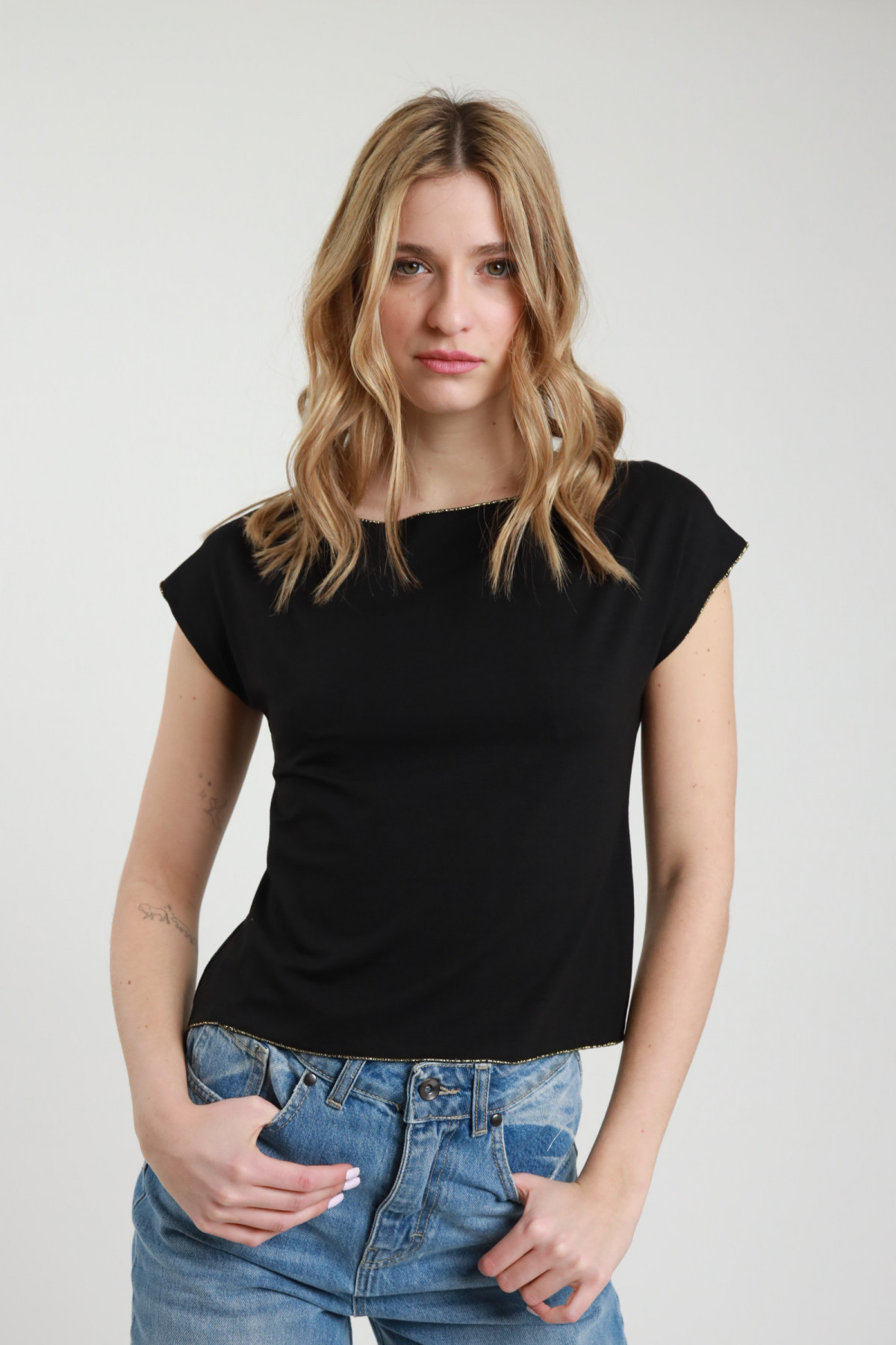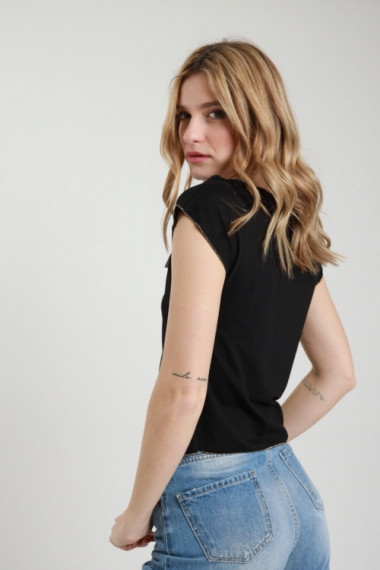 Frullino Raw Cut T-Shirt mit Lurexbesatz. 94 %vi 6 %ea