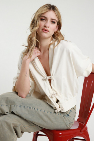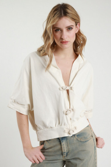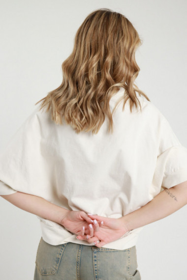 T-shirt in Cotone Corta a Mezza Maniche con Girocollo Gioiello e Bottone sul Retro.