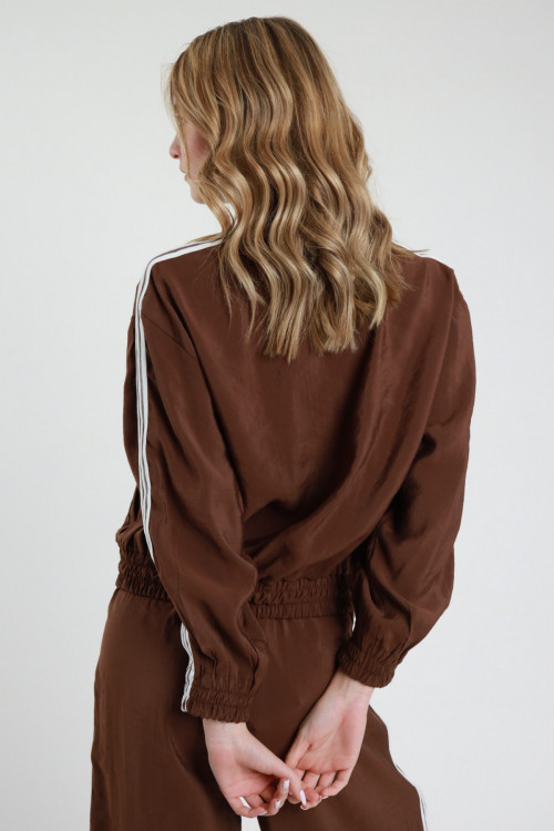 Giacca Camicia Taglio Over in Denim Lavaggio Colorato Marrone con Sbiaditure e Chiusura Bottoni. 100%co