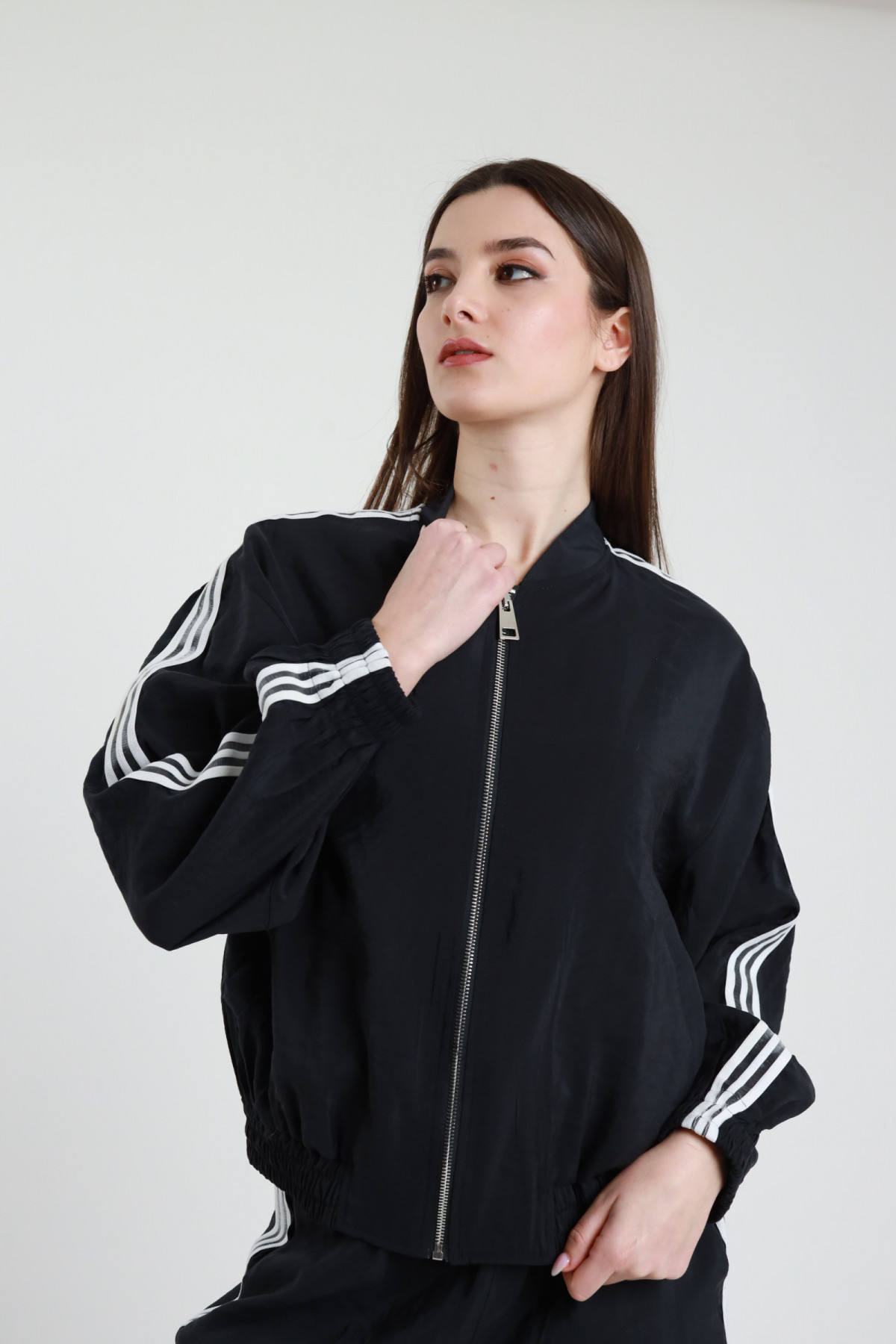 Übergroße Bomberjacke aus gesteppter Baumwolle mit Blumenstickerei und Reißverschluss. 100 % co
