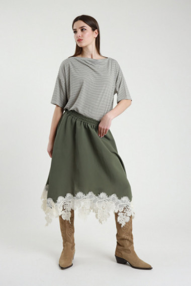 Long Checked Skirt with Elastic Waist and Adjustable Length with Button. 73%co 22%pl 5%af