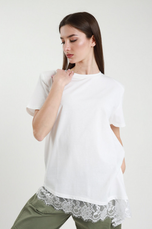 T-Shirt con Ripresa + Pizzo