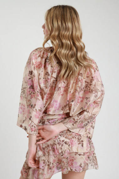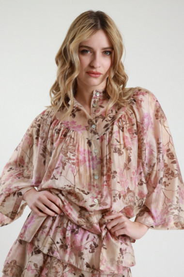 Oversized shirt in satin-effect stretch viscose in cashmere pattern. 97%vi 3%ea
