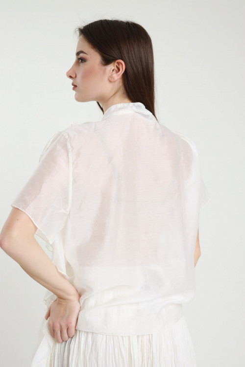 Camicia Georgette in Trasparenza con Dettaglio Pizzo sui Polsi.