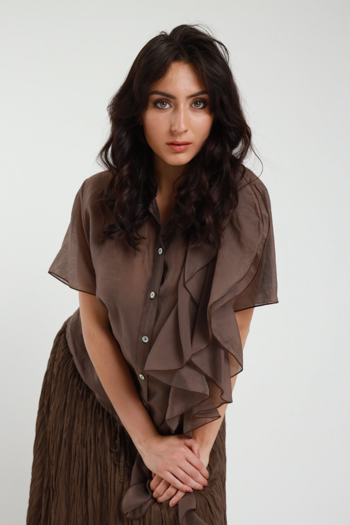 Camicia Georgette in Trasparenza con Dettaglio Pizzo sui Polsi.