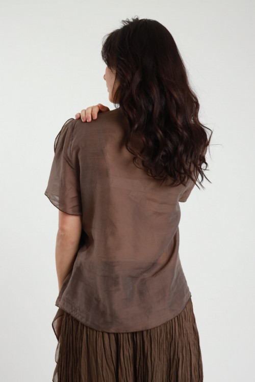 Halbtransparentes Halbarmshirt mit Rouges. 85%tn 15%pl
