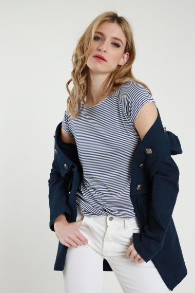 Gestreiftes T-Shirt mit U-Boot-Ausschnitt