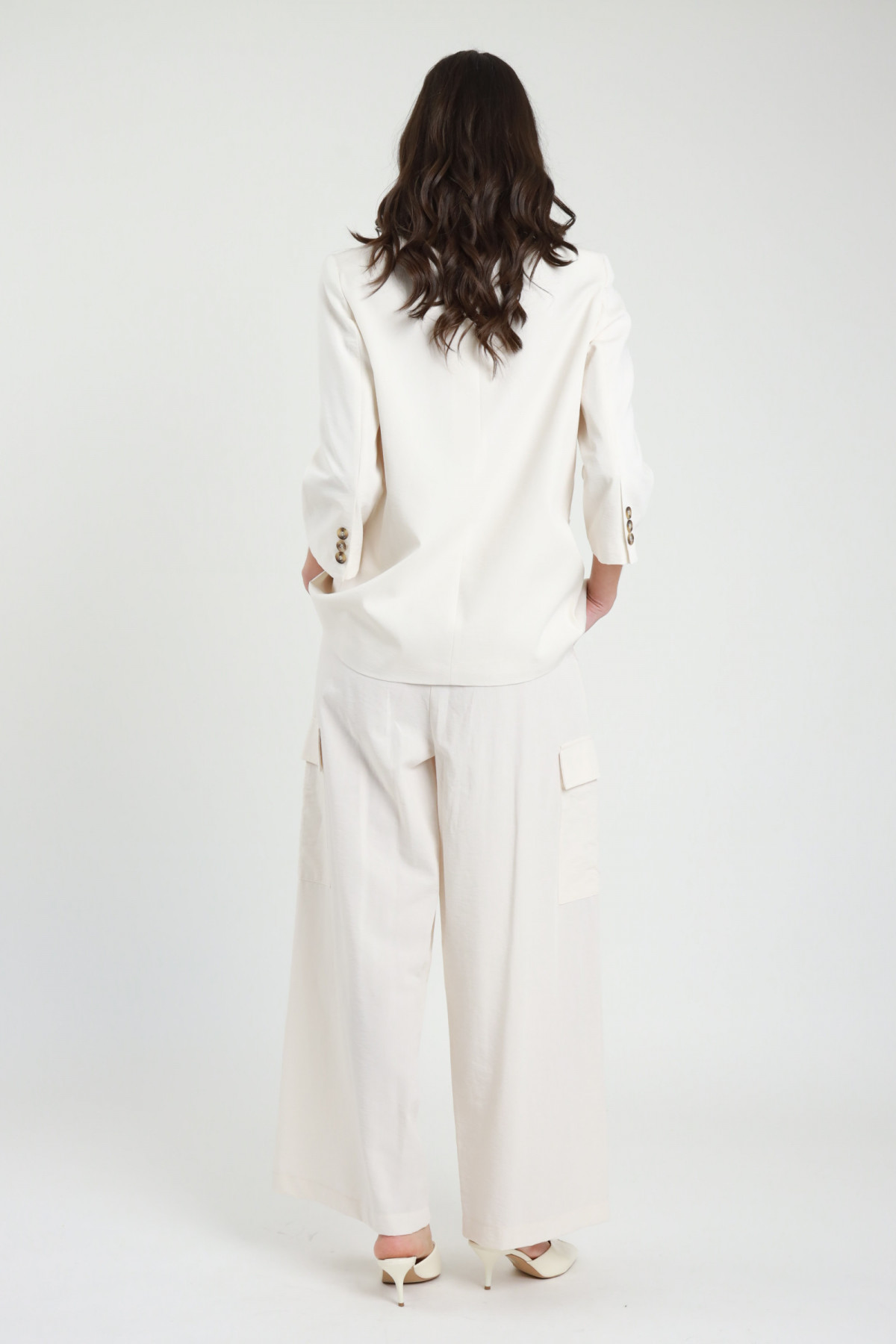 Übergroße Jacke mit 3/4-Ärmeln, klassischem Revers und Pattentaschen. 45%co 43%vi 12%ny+100%pl