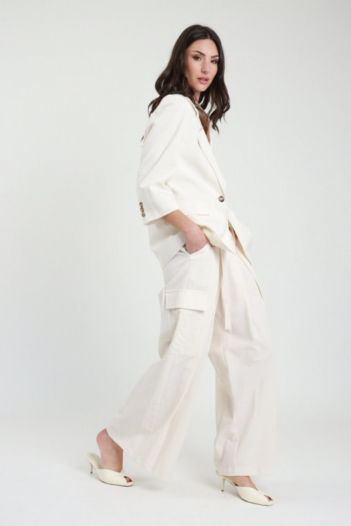 Weite Palazzo-Hose mit großen Falten, großen Taschen am Bein und Gürtel in der Taille. 45 %co 43 %vi 12 %ny