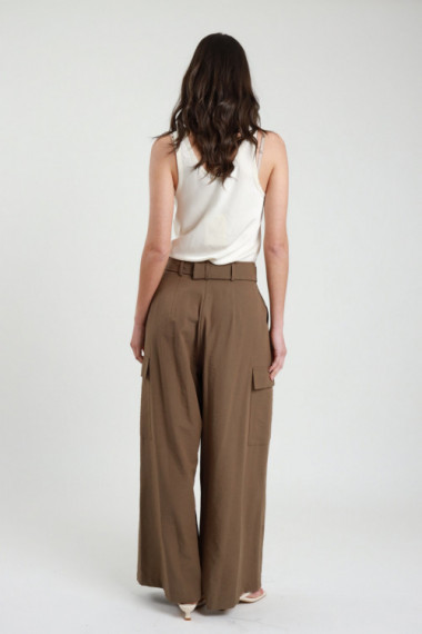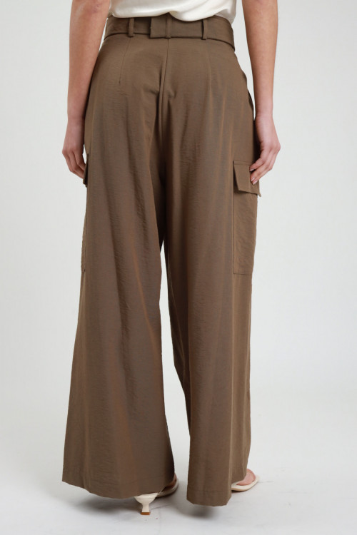 Weite Palazzo-Hose mit großen Falten, großen Taschen am Bein und Gürtel in der Taille. 45 %co 43 %vi 12 %ny