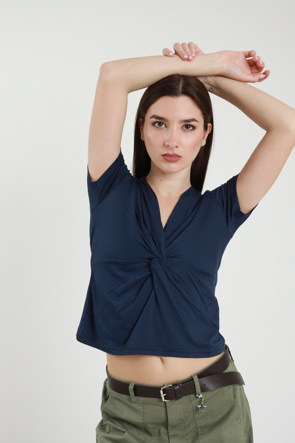 Ärmelloses Top aus Stretch-Baumwolle mit V-Ausschnitt und gestickten Rüschen. 94 % Co 6 % Stück