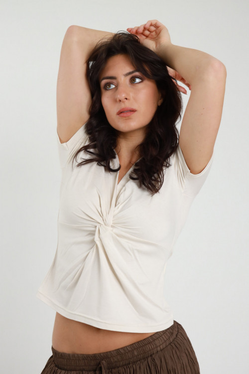 Ärmelloses Top aus Stretch-Baumwolle mit V-Ausschnitt und gestickten Rüschen. 94 % Co 6 % Stück