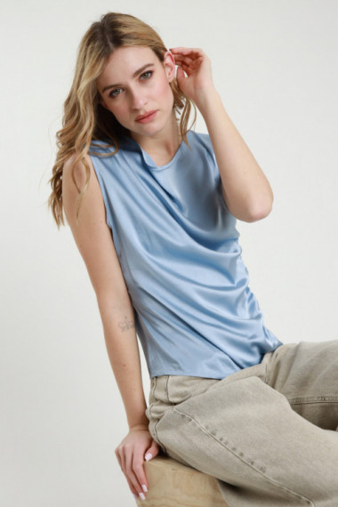 Ribbed tank top in stretch cotton, neckline in a little flower pattern. 95%co 5%ea