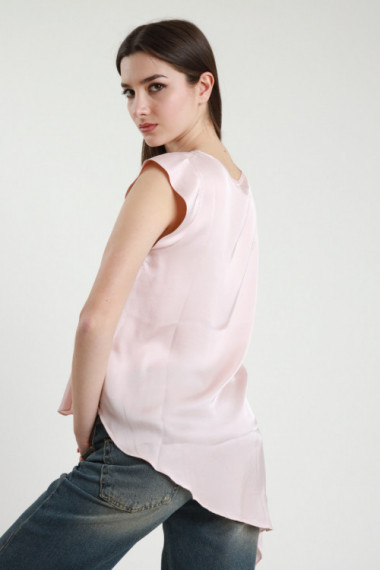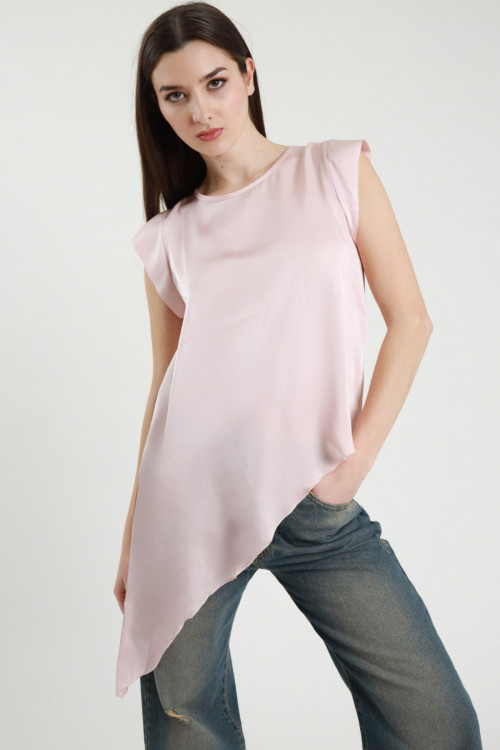 Top Satinato in Pizzo con Scollo a V e Spalline Sottili. Fondo Lungo Asimmetrico.