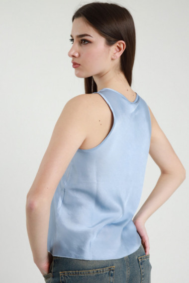 Asymmetrical Sleeveless Crop Top with Gather under the Breast and Lace Applied on the Armhole. 94%co 6%ea