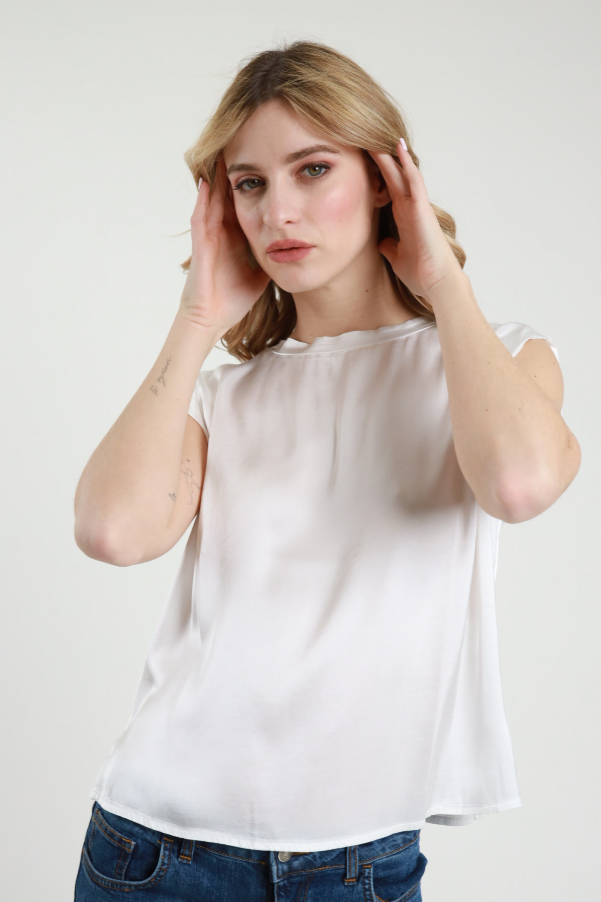 Asymmetrical Sleeveless Crop Top with Gather under the Breast and Lace Applied on the Armhole. 94%co 6%ea
