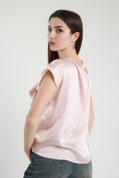Top Satinato in Pizzo con Scollo a V e Spalline Sottili. Fondo Lungo Asimmetrico.