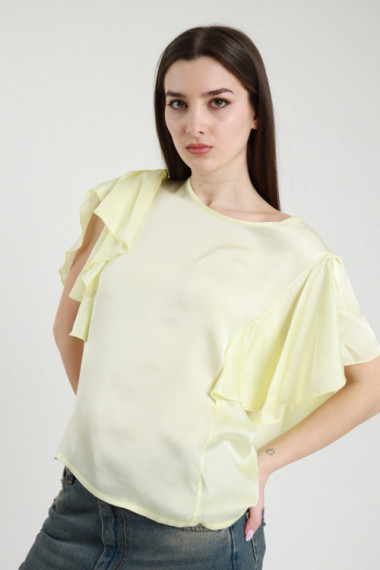 Embroidered half-sleeved blouse with ruffles and lace on the neckline, elastic under the bust and puffed sleeves. 49%ly 30%pl 21%pa
