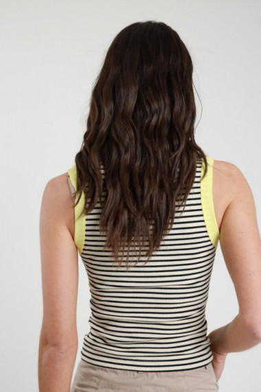 Tanktop mit asymmetrischen Trägern und Schmucksteinen auf der Vorderseite, die Locken formen. Slim-Fit. 95 % pl 5 % Stück
