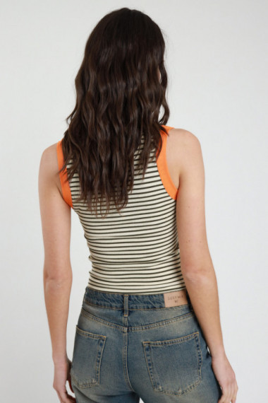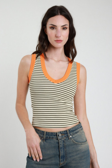 Tanktop mit asymmetrischen Trägern und Schmucksteinen auf der Vorderseite, die Locken formen. Slim-Fit. 95 % pl 5 % Stück