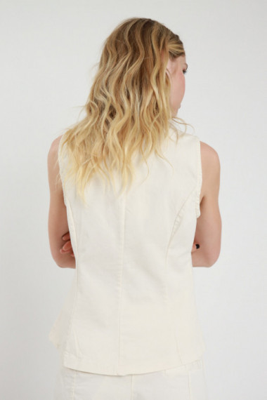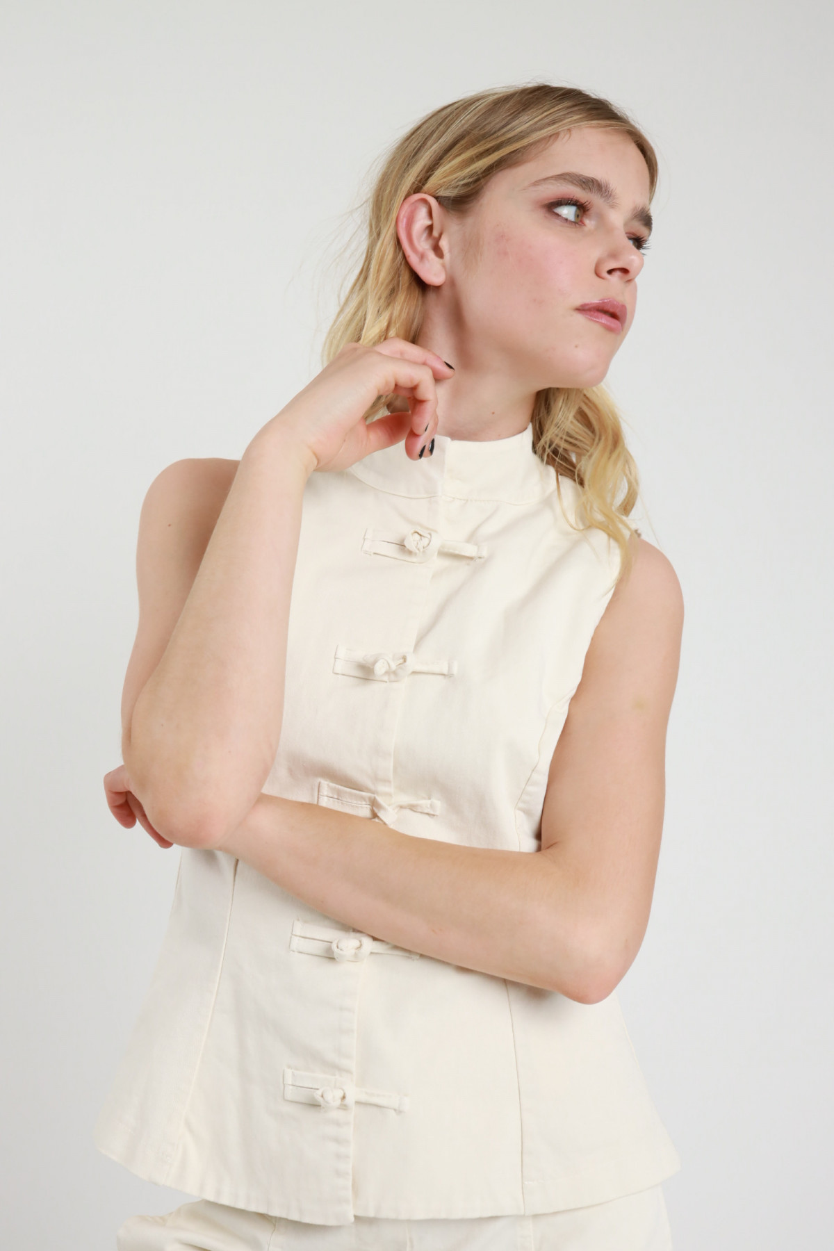 Top Smanicato in Pizzo Collo alla Coreana con Chiusura sul Fronte con Alamari.
