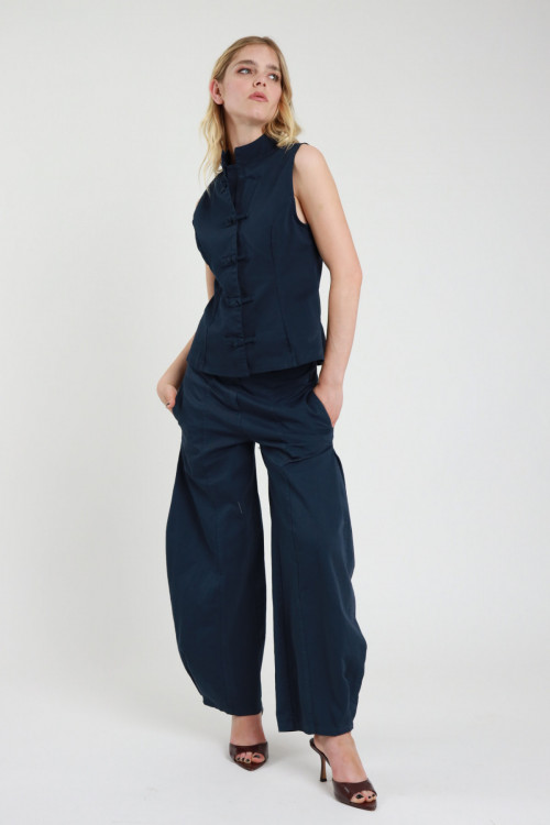 Ovetto-Hose mit Bundfalten, hohem Bund, Einzelknopf und Portemonnaietaschen. 97 % CO 3 % Stück